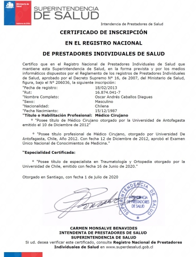 El Dr. Oscar Ceballos es especialista en Ortopedia y Traumatología de la Universidad de Chile, con subespecialización en Oncología Ortopédica y amplia experiencia en el manejo de tumores óseos y de tejidos blandos, así como en patologías traumatológicas complejas.